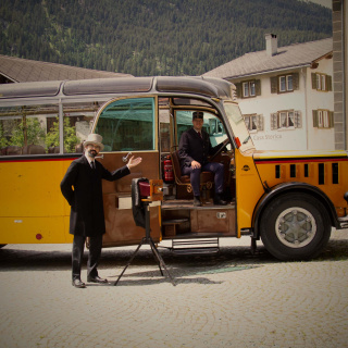 Geniessen Sie die beschauliche Gemächlichkeiten einer SpazierFahrt im Oldtimer-Postauto mit Erwin Dirnberger als Reiseführer und Andrea Gaudenz als Postauto-Chauffeur.